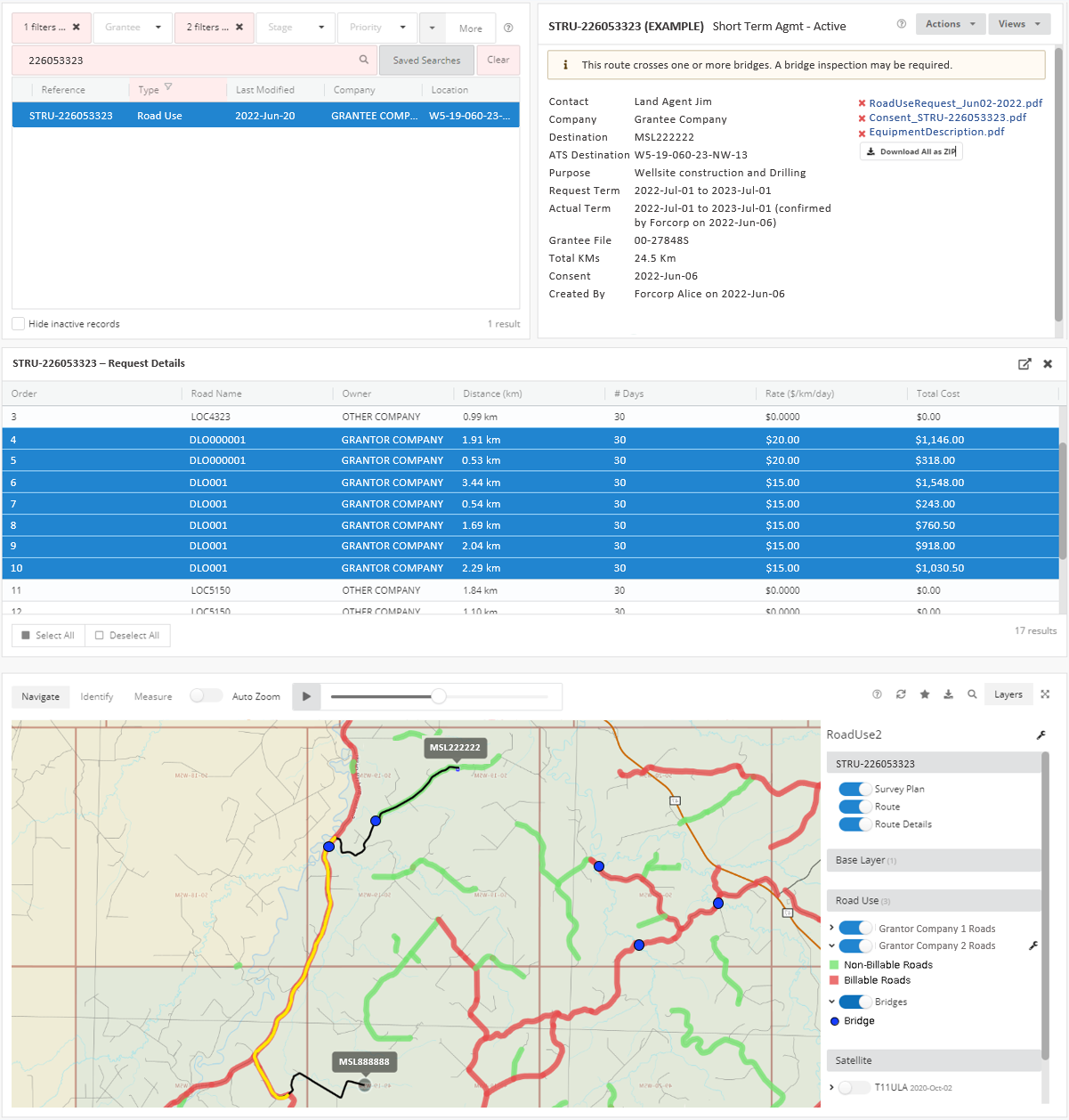 The Road Use module is a process management tool designed to streamline the steps, and efficiently manage the information, associated with industrial road use requests. Requests proceed through the system automatically, moving to the next step only once they have satisfied systematic and manual review.