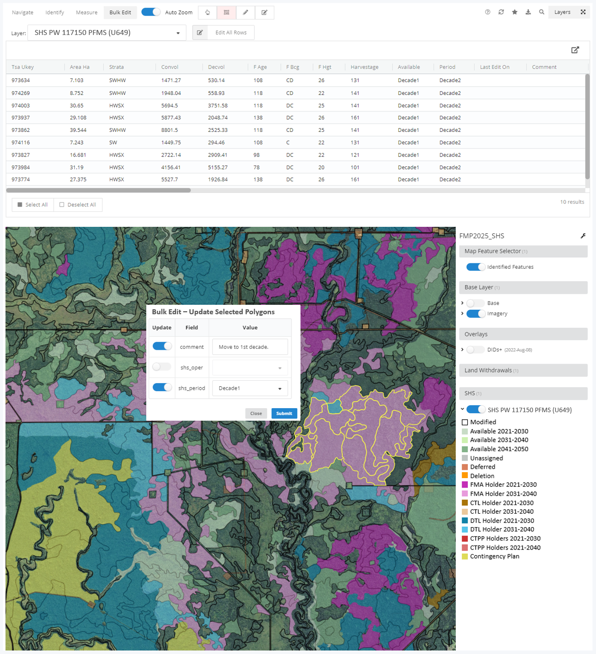 - Permitted parties can review and edit spatial harvest sequences in real time.